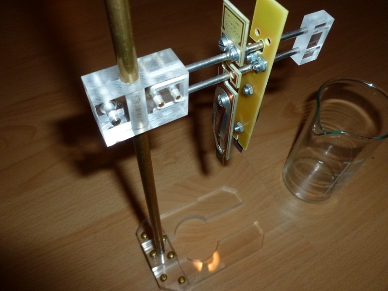 demnach 55 mm. Für unsere Experimente haben wir der Einfachheit halber zwei Feingoldbarren 999,9 je 1 Gramm verwendet. Die Flächen sind nicht direkt vergleichbar, die Goldstäbe haben eine größere Fläche, das ist zu beachten. Das zu erwartende Ergebnis ist darum nach oben zu korrigieren. Allerdings spielt sich das alles ohnehin in Bereichen "homöopathischer Dosen" ab, von "ppm" kann also keine Rede sein.