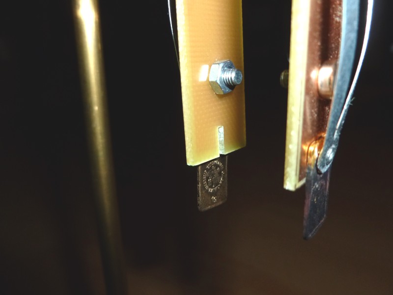 Die Elektrodenhalter können bequem während des Betriebes zum Reinigen oder Wiegen seitlich ein- und ausgehängt werden. Der elektrische Kontakt erfolgt lediglich durch die Aufhängung, einmal über den oberen und zum anderen über den unteren Querstab.