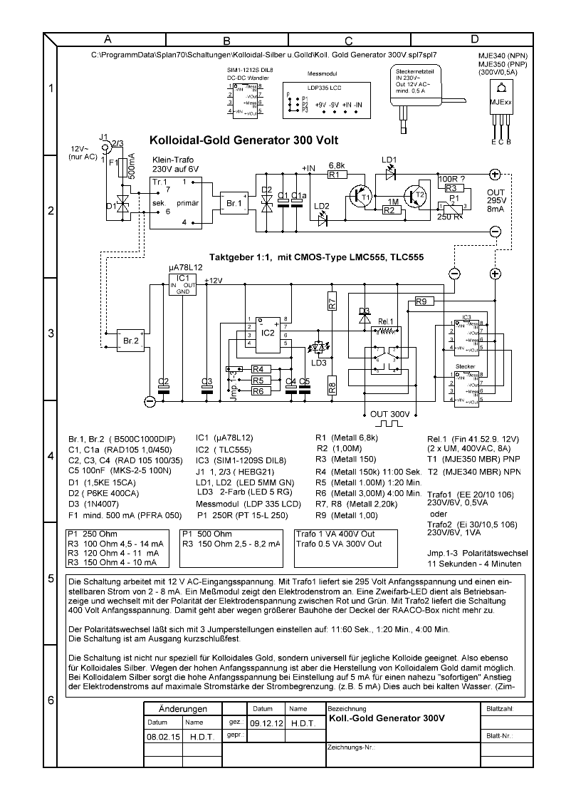 Dieses Projekt stellt einen Selbstbau dar und ist nicht als allgemeine Nachbauempfehlung gedacht, da hier Spannungen von bis zu 300 Volt auftreten. Jeder, der es dennoch für sich nachbaut, handelt eigenverantwortlich. Jegliche Haftung wird hiermit ausgeschlossen.