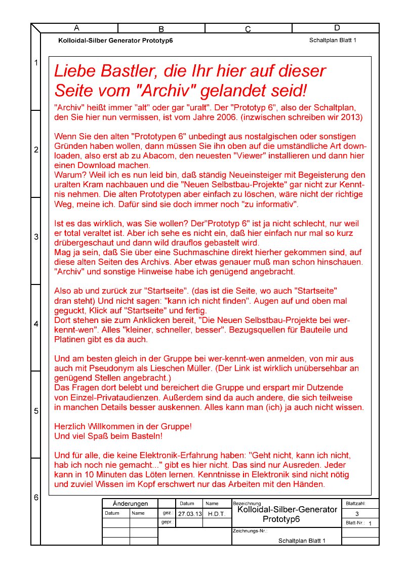 Laden Sie dann den betreffenden Schaltplan oder das Platinenlayout. Wenn das nicht geht, gehen Sie auf den Link und drücken Sie die rechte Maustaste und wählen Sie "Ziel speichern unter..." und speichern Sie die Datei in einen Ordner oder auf Diskette. Öffnen Sie diese danach mit dem "Viewer". Download Schaltplan Prototyp6 Blatt 1 Download Schaltplan Prototyp6 Blatt 2 Download Schaltplan Prototyp6 Blatt 3