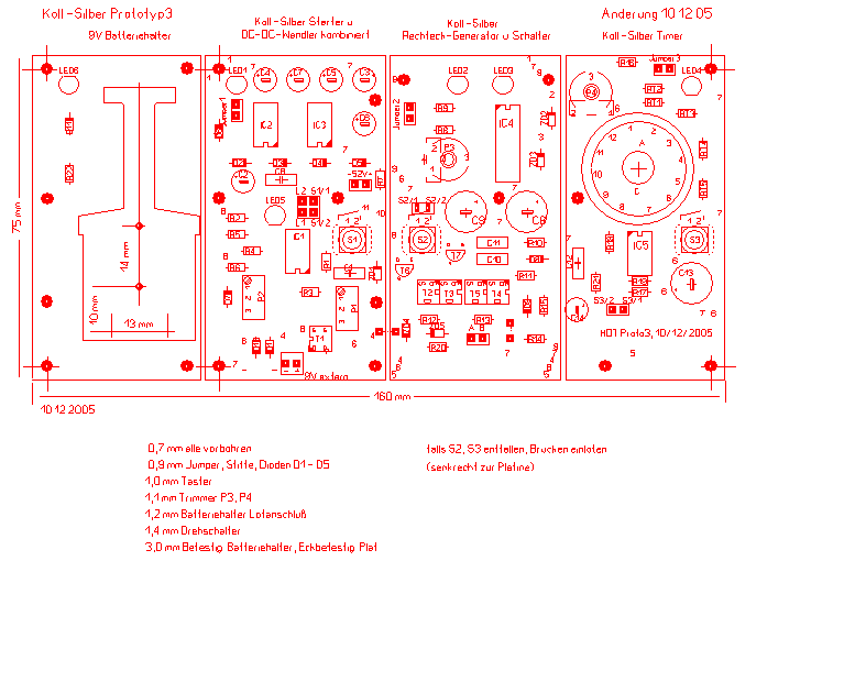 Bild 3: Bestückungs- und Bohrplan Alle Bohrlöcher: 0,7 mm vorbohren. Aufbohren wie oben.
