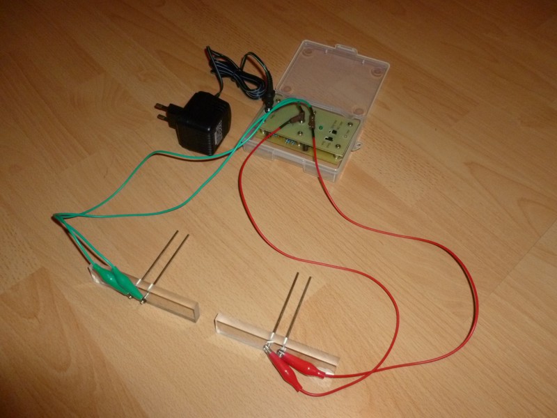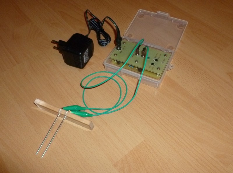 1 Paar (2 Stück) Silberelektroden 2,5 mm, 75 mm oder beliebig länger 1 Platine (Lieferquelle siehe unten) * * * Folgende 2 Teile nur für den späteren Einbau in ein