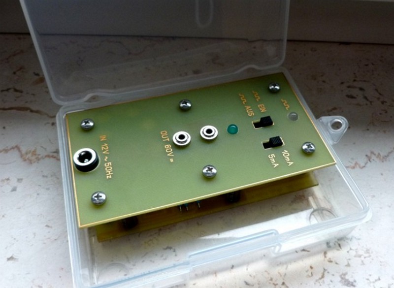 und das anschließend ein vollwertiges Gerät mit Batteriebetrieb ergibt. Hier geht es zum Gehäuse-Einbau * * * Es wird auch hier - wie bei allen vorhergehenden Selbstbau-Projekten - ausdrücklich betont, daß Nachbau und Betrieb auf eigenes Risiko und eigene Verantwortung erfolgen. Die frei zugängliche Spannung beträgt maximal 60 Volt und liegt im zulässigen Rahmen der Vorschrift für Kleinspannung SELV. Dennoch sind solche Geräte von Kindern und nichtsachkundigen Personen fernzuhalten. Diese Anleitung dient nicht der kommerziellen Nutzung, sondern ausschließlich der persönlichen Anwendung für eigene, private Zwecke.