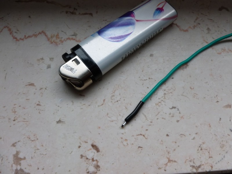 Abschließend kommt der Schrumpfschlauch drüber und wird mit dem Feuerzeug oder Heißluftgerät geschrumpft. Zum Schluß dieser Vorbereitungen sieht das so aus: