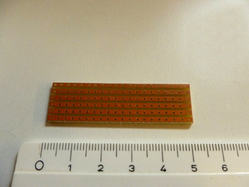 Das ist unser kleines Lochraster-Platinchen, geschnitten aus einem größeren Stück.
