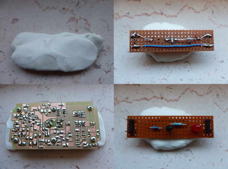 1 Stück Streifenrasterplatine 50 x 100 mm, Reichelt Best.-Nr. H25SR050 1 Stück Stiftleiste 10-polig, Reichelt Best.-Nr. MPE 087-1-010 1 Stück Diode D1, Reichelt Best.-Nr. BAT 46 1 Stück IC1, Reichelt Best.-Nr. LM 317 TO 92 1 Stück LD1, Reichelt Best.-Nr. LED 5MM RT 1 Stück Widerstand R1, Reichelt Best.-Nr. METALL 249 4 Stück Blockbatterien 9 Volt 1 Stück Draht von irgendwoher 1 UHU patafix (wiederverwendbare Klebepads) als Fixierhilfe * * *